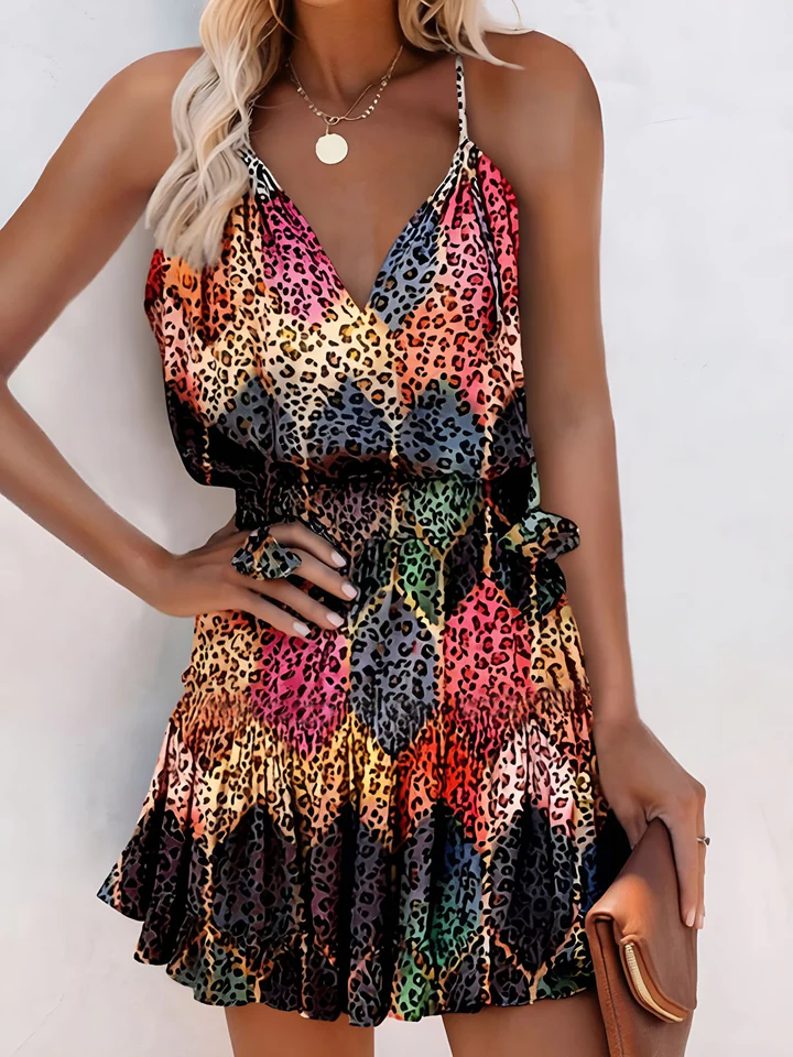 Leopard V-Neck Smocked Ruffled Tiered Mini Dress: Casual Yet Chic