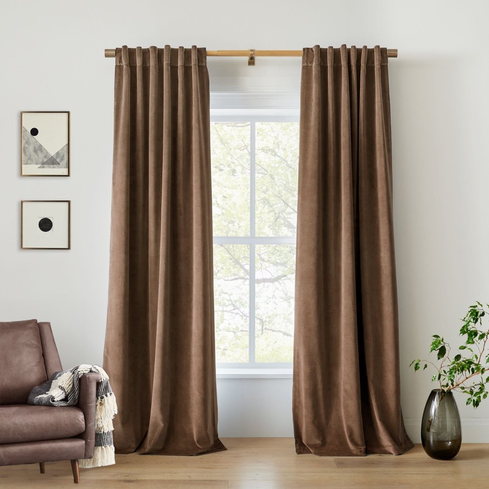 Combine Celeste velvet curtains with minimalist bedroom décor for a modern, luxurious feel. For a softer aesthetic, Solene linen blackout curtains pair beautifully with neutral bedding, natural wood furniture, and textured throws. Using curtain rods that extend beyond the window frame can help maximize light blockage when the curtains are drawn.