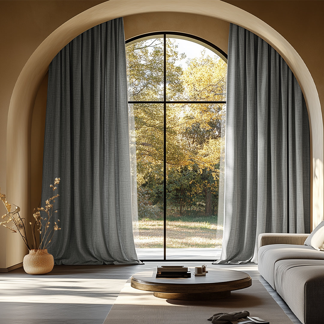 For a lighter, more textured look while maintaining full blackout capabilities, Solene Custom Linen Texture 100% Total Blackout Curtains are perfect. Linen texture adds softness and depth, making the curtains visually appealing even when closed. They provide the same functional benefits as velvet curtains, including complete light blockage and insulation, but with a more relaxed, natural appearance.